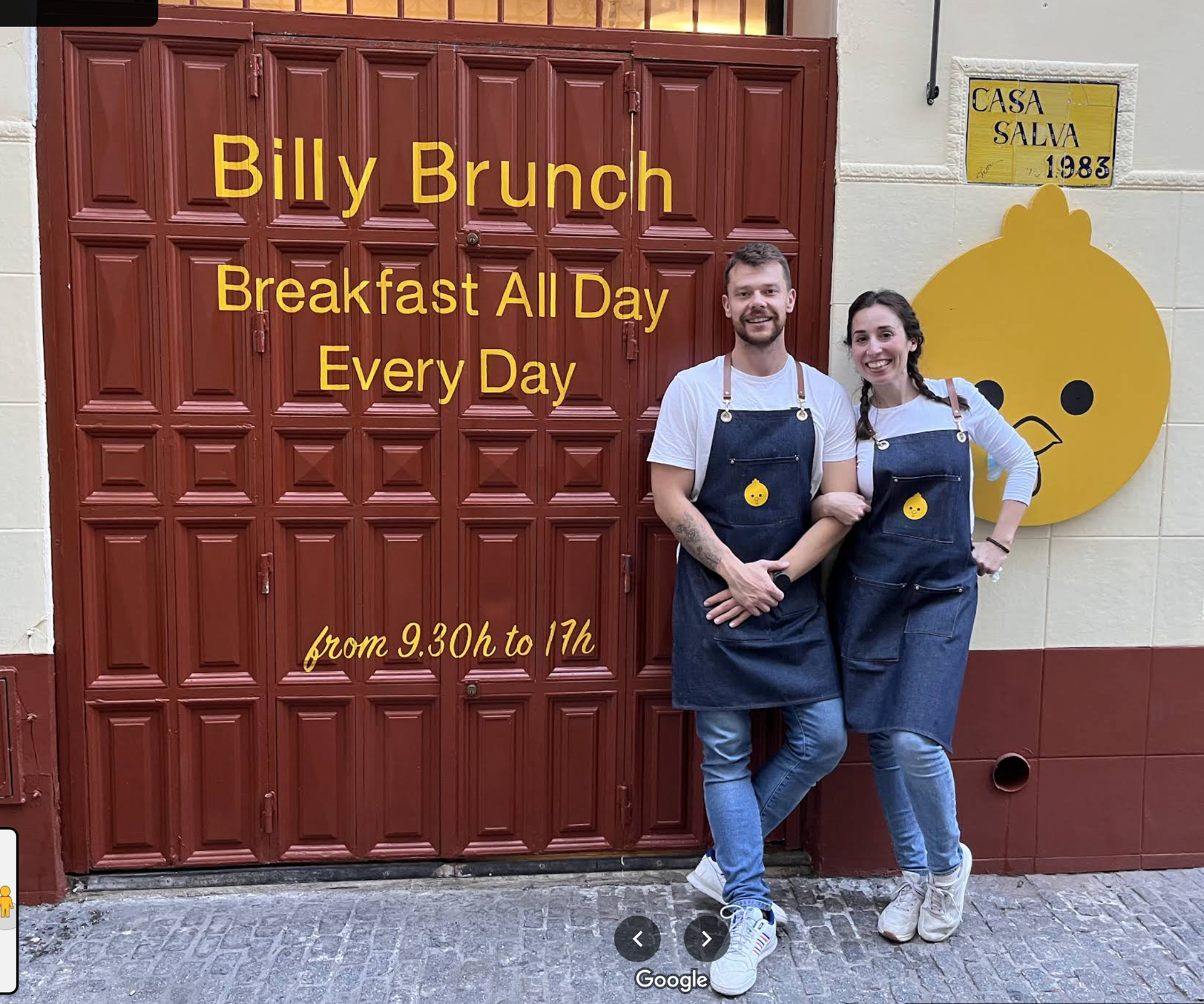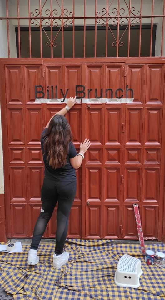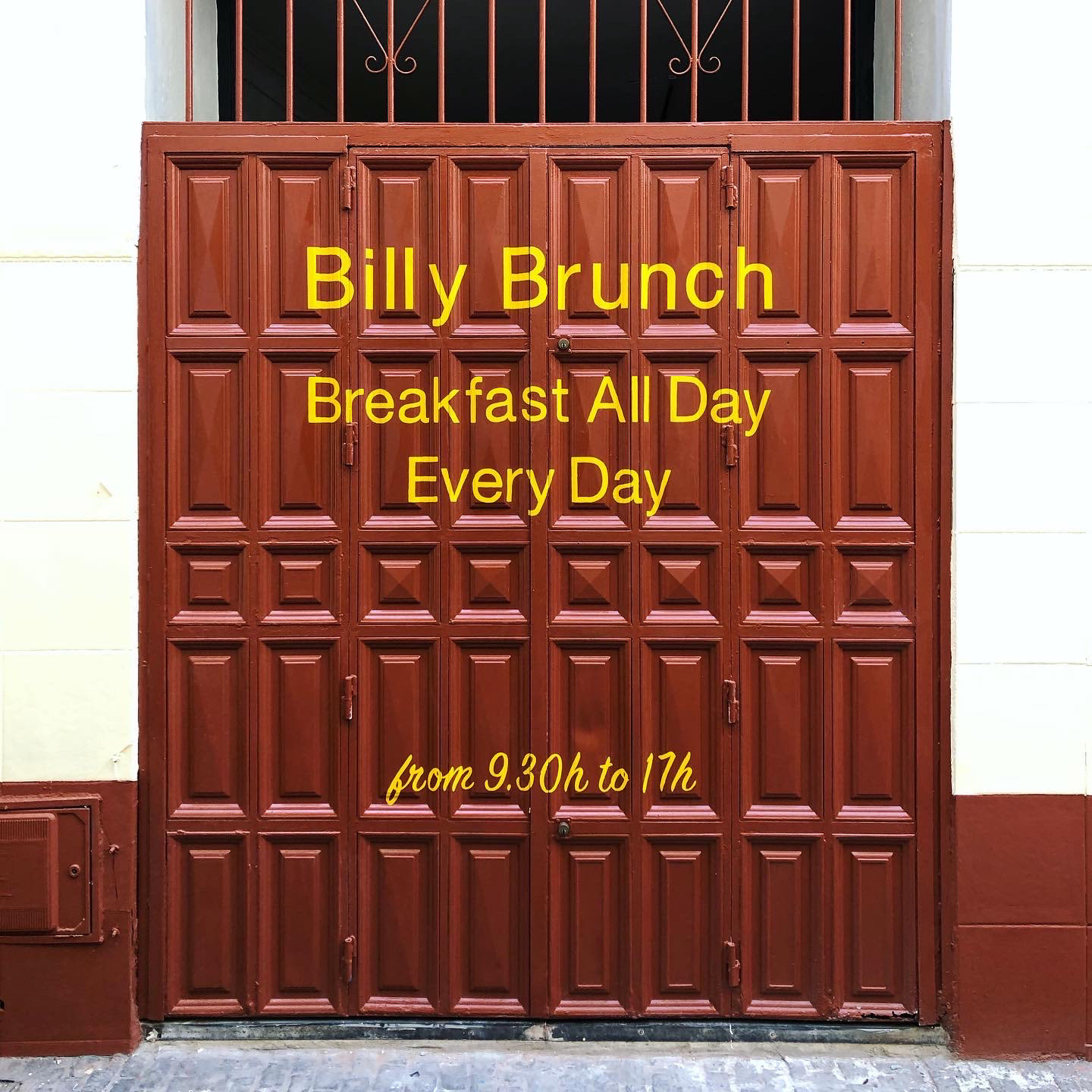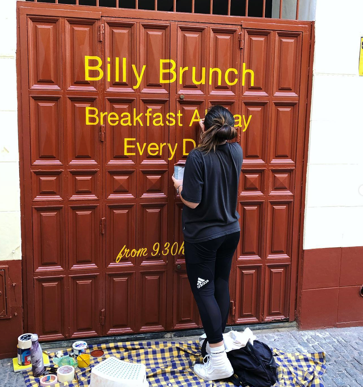 Billy Brunch is a restaurant chain across Spain, and I was asked to paint the front door sign for their Seville spot. The design was set in Helvetica, but with the bottom line in a script style to give it a warmer, more personal touch. Pulling it off wasn’t straightforward – yellow type on a red background, painted over an old textured door, under the Seville heat – but the end result balanced clean typography with a bit of hand-done character.