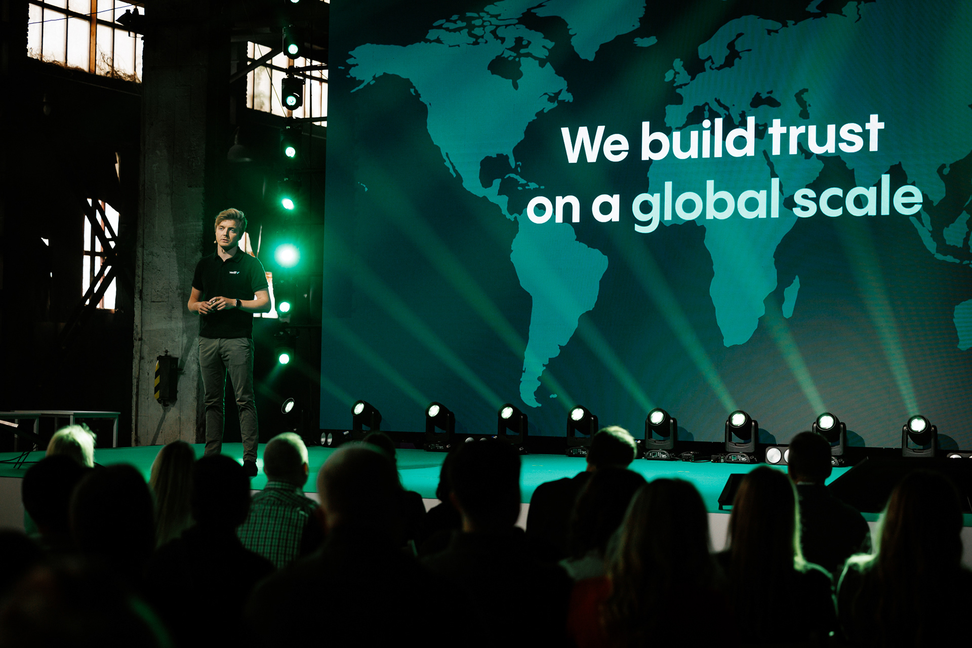 Veriff attends many events and trade shows over the course of the year. My job was to ensure that our booths were eye catching and portrayed Veriff's mission clearly. The general consensus was to use our primary colour palette for trade shows – this one is maximising Veriff's light teal brand colour.